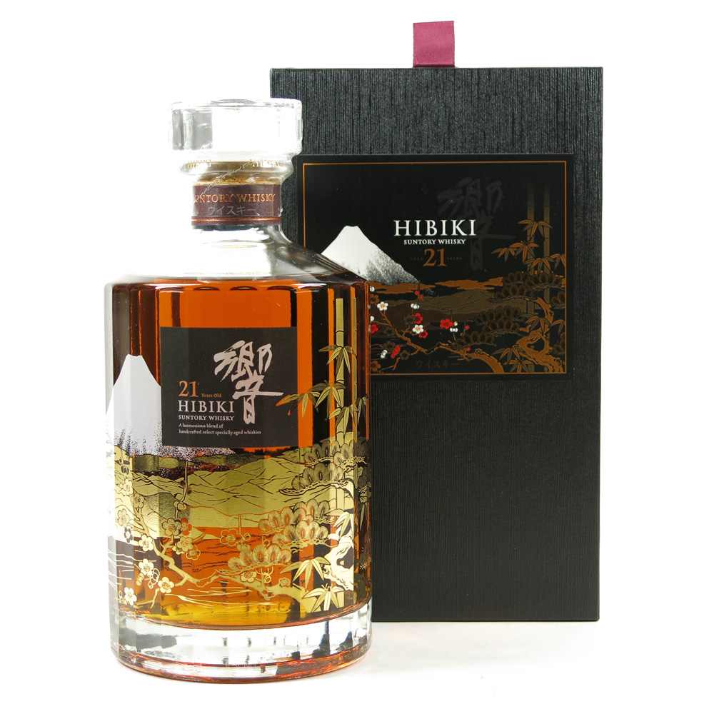 Rượu Suntory Hibiki 21 Limited Edition thể hiện nét đẹp của thiên nhiên Nhật Bản. Nó được sản xuất vào năm 2015 với hình ảnh núi Phú Sỹ được khắc họa trong 2 màu đen và trắng bên cạnh những cành mận đào Nhật. Điểm thêm những cành thông và những cây tre ánh vàng trải dài tượng trưng cho sự hạnh phúc, may mắn và sung túc đủ đầy.