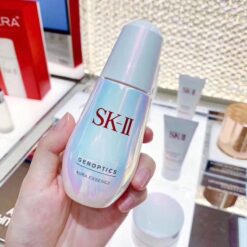Genoptics Aura Essence của SK-II sẽ làm da bạn căng bóng, trắng mịn, óng ả ngay từ bên trong. Cảm giác như được phủ một lớp silicone căn mịn trên bề mặt da và cảm giác căng mịn đến tận sáng hôm sau.