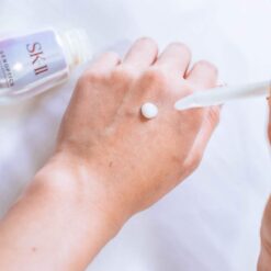 - Sau khi rửa mặt sạch và dùng qua bước nước hoa hồng SK-II Lotion, Nước thần SK-II