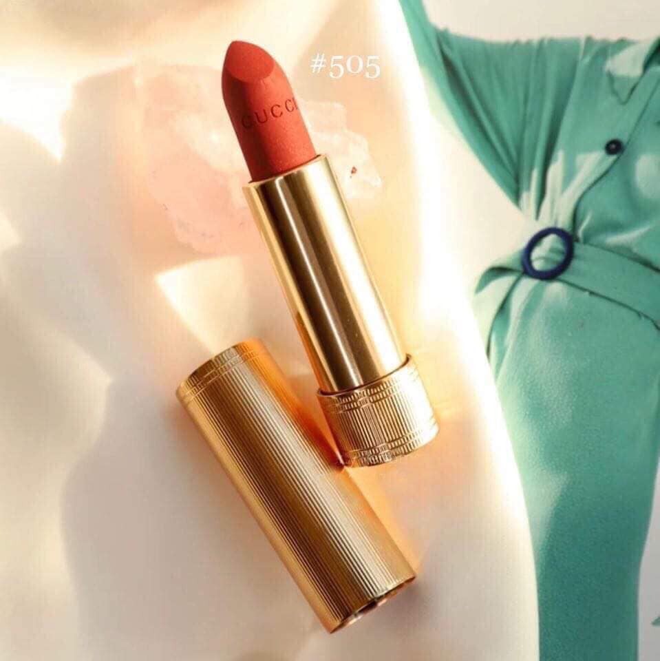 Son Gucci 505 kết cấu lì mềm mại, nhẹ tênh cùng thời gian bám màu không tưởng