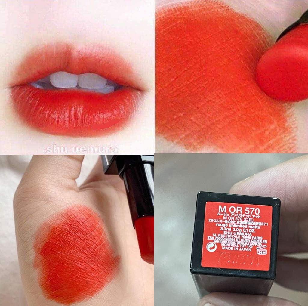 Một lần lỡ duyên vạn niềm tiếc nuối – nếu biết đến Shu Uemura mà chưa dùng son Shu Uemura 570 thì quả thực là bỏ lỡ cả một tuyệt tác. Một sắc đỏ cam đủ sức cạnh tranh với cả những dòng son high-end. Đỏ cam của son Shu Uemura OR 570 hòa trộn hài hòa, tôn da bần bật. Son chất lì lên màu chuẩn đẹp, cho bất cứ cô nàng nào cũng đều tỏa sáng hơn nắng mai. Trong “sơ đồ son đỏ” thì đỏ cam chính là điểm sáng. Tông son này còn tôn da hơn cả đỏ tươi, đỏ thuần, sành điệu một cách trẻ trung, ai dùng cũng đẹp.