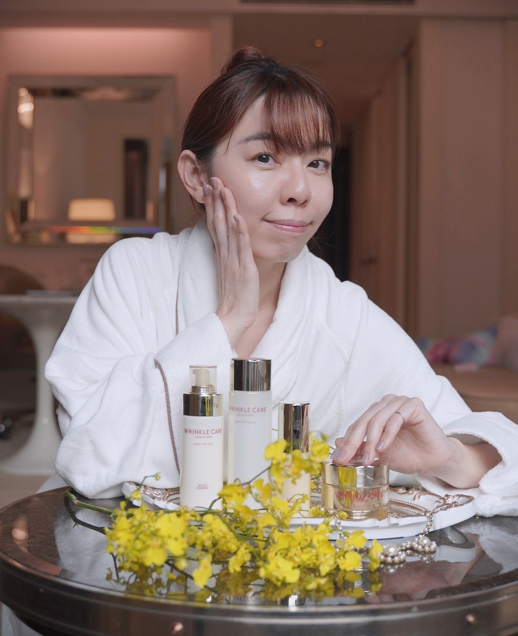 - Sau khi dùng sữa rửa mặt và thoa nước hoa hồng (lotion).