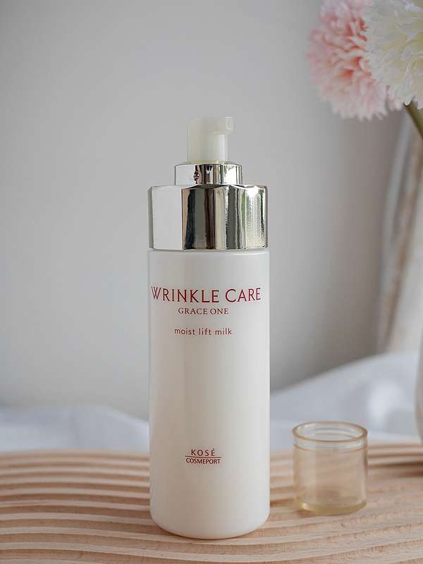 Sữa dưỡng ẩm chống lão hoá Kose Wrinkle Care Grace One Moist Lift Milk Nhật Bản là sản phẩm cao cấp đến từ thương hiệu Kosé nổi tiếng tại “xứ sở hoa anh đào” với công dụng xóa nếp nhăn, căng các vết chân chim ở trán, đuôi mắt hay khóe miệng hiệu quả, đồng thời còn giúp bạn cải thiện làn da sạm màu, gia tăng độ đàn hồi, cho da luôn trắng sáng, mịn màng và tươi trẻ.