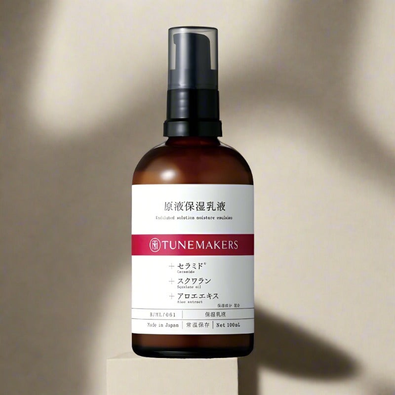 Xuất xứ từ Nhật Bản, sữa dưỡng ẩm Tunemakers Undiluted Solution Moisture Ceramide Emulsion được phát triển dựa trên ý tưởng phối trộn 5 loại tinh chất nguyên chất (stock solution) theo tỷ lệ tối ưu. Công thức “tỷ lệ dưỡng ẩm” được thiết kế đặc biệt để cân bằng tỷ lệ dầu – nước của làn da và phục hồi hàng rào bảo vệ tự nhiên.