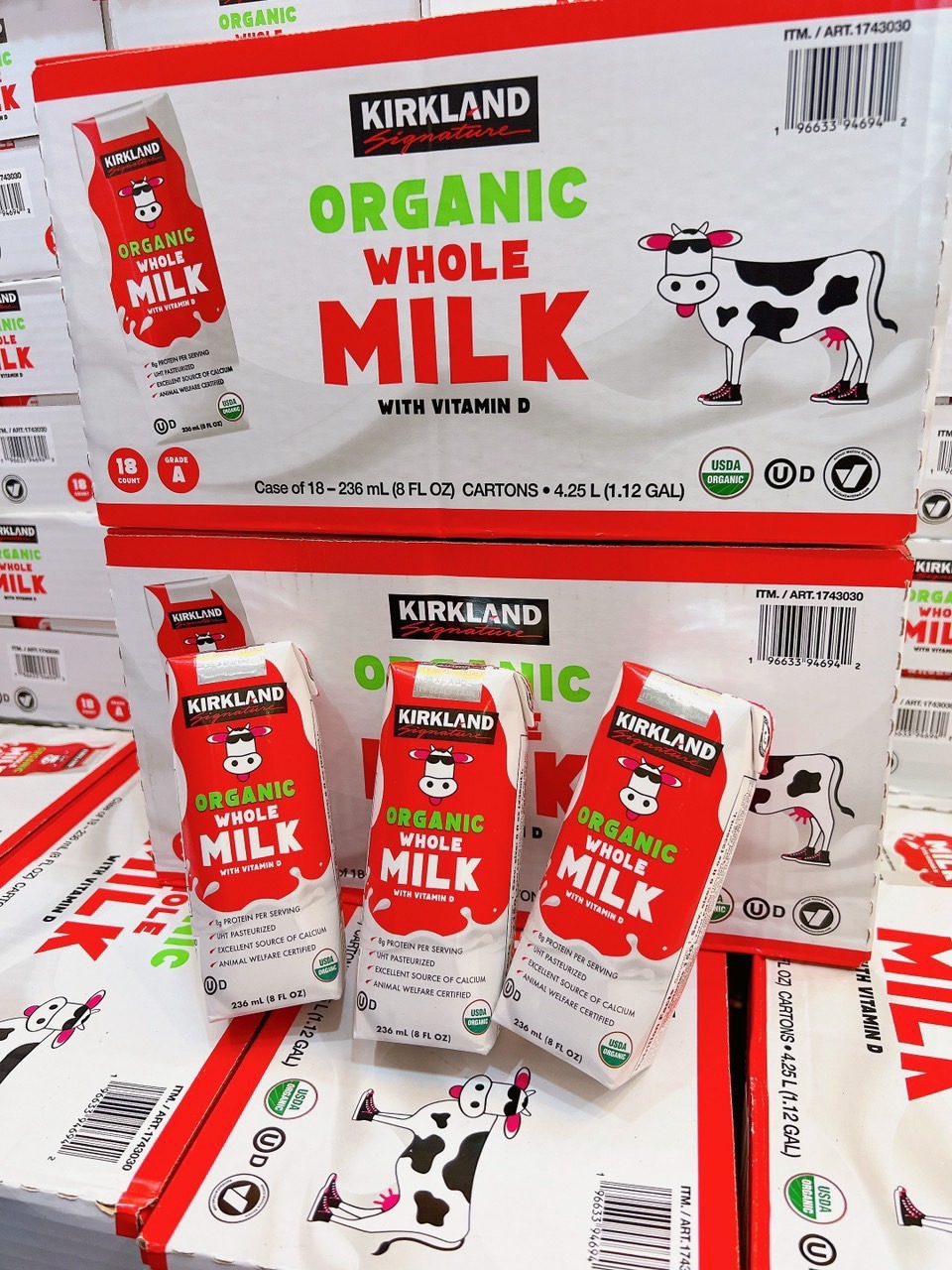 - (*) Sữa tươi Kirkland không thay thế bữa ăn chính, không phải là thuốc chữa bệnh.