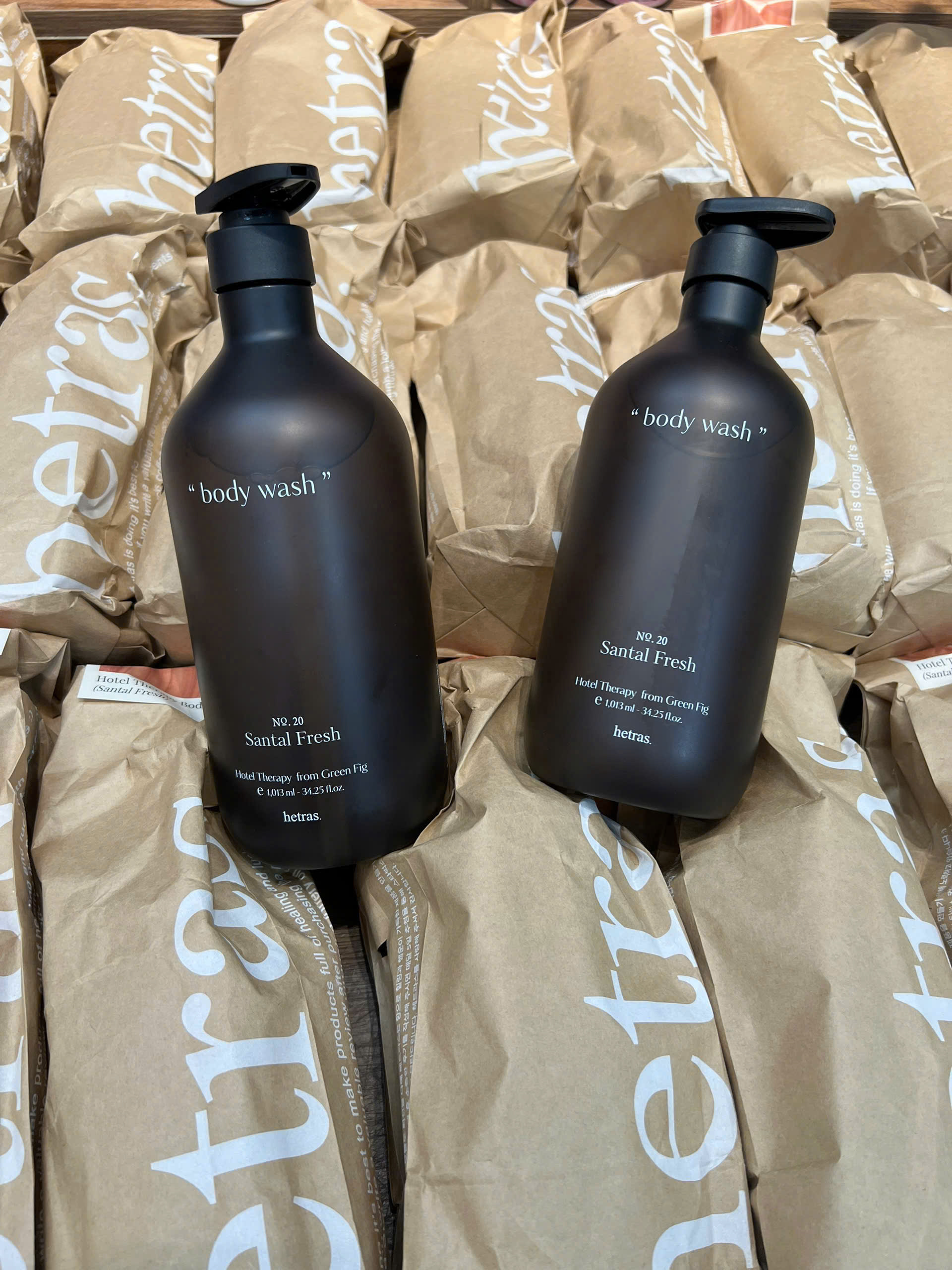 Sữa tắm Hetras No.20 Santal Fresh được giới thiệu với công thức hướng đến việc làm sạch dịu nhẹ và chăm sóc da mềm hơn sau khi tắm. Một số thành phần thường được nhắc đến gồm chiết xuất quả sung xanh, panthenol và allantoin, giúp hỗ trợ làm dịu da và tăng cảm giác dễ chịu khi sử dụng hằng ngày.
