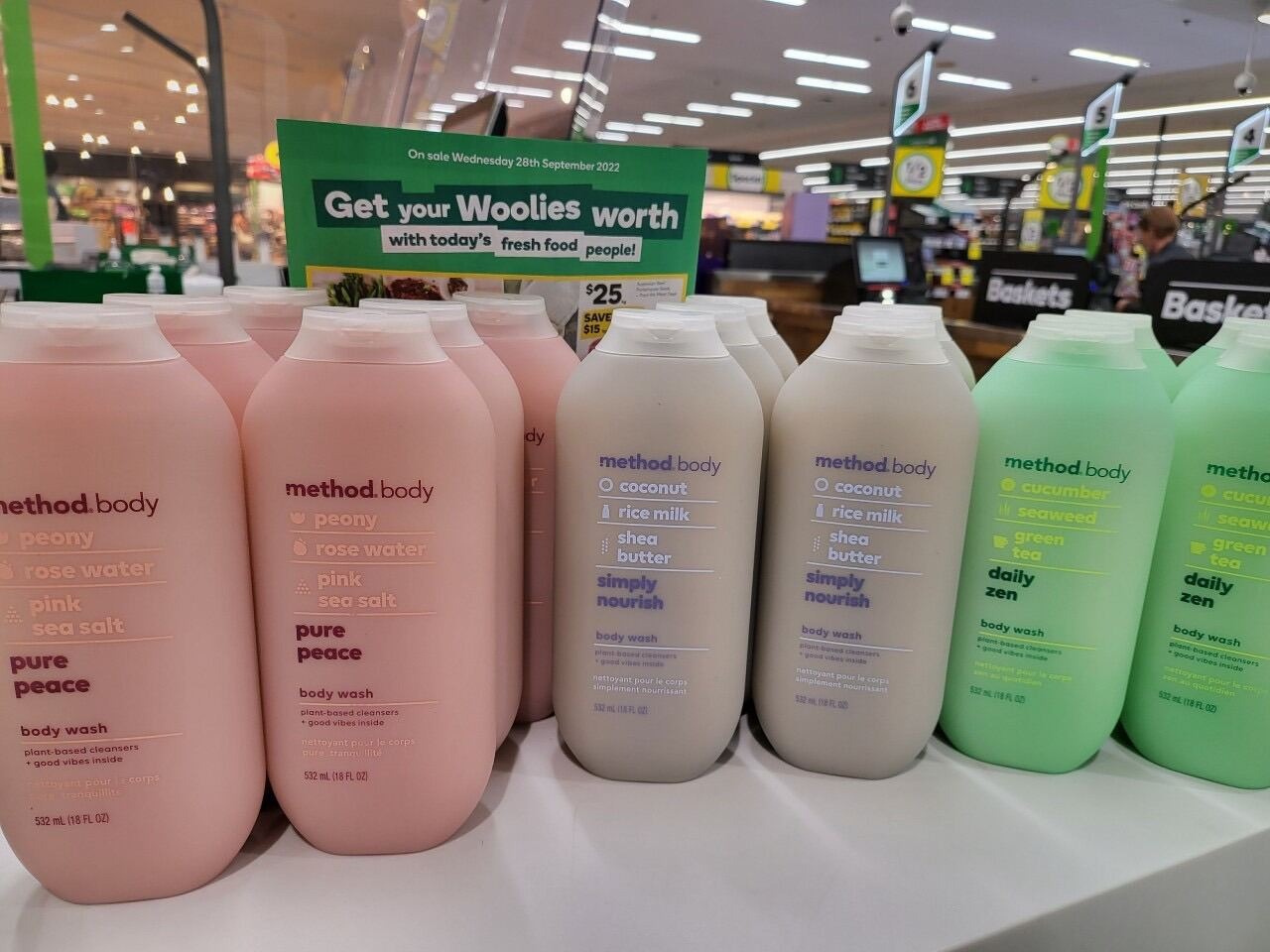 Method Body Wash, Simply Nourish and Pure Peace – Bộ sữa tắm Method với mùi hương hoa mẫu đơn, hoa hồng dịu nhẹ và mùi hương ngọt ngào của dừa, sữa gạo và bơ hạt mỡ sẽ mang lại cho làn da mềm mại, mịn màng và được nuôi dưỡng. Cả 2 loại sữa tắm này đều có công thức có thể phân hủy sinh học, không độc hại, chất tẩy rửa có nguồn gốc từ thực vật và chai được làm bằng 80% nhựa tái chế (PCR).