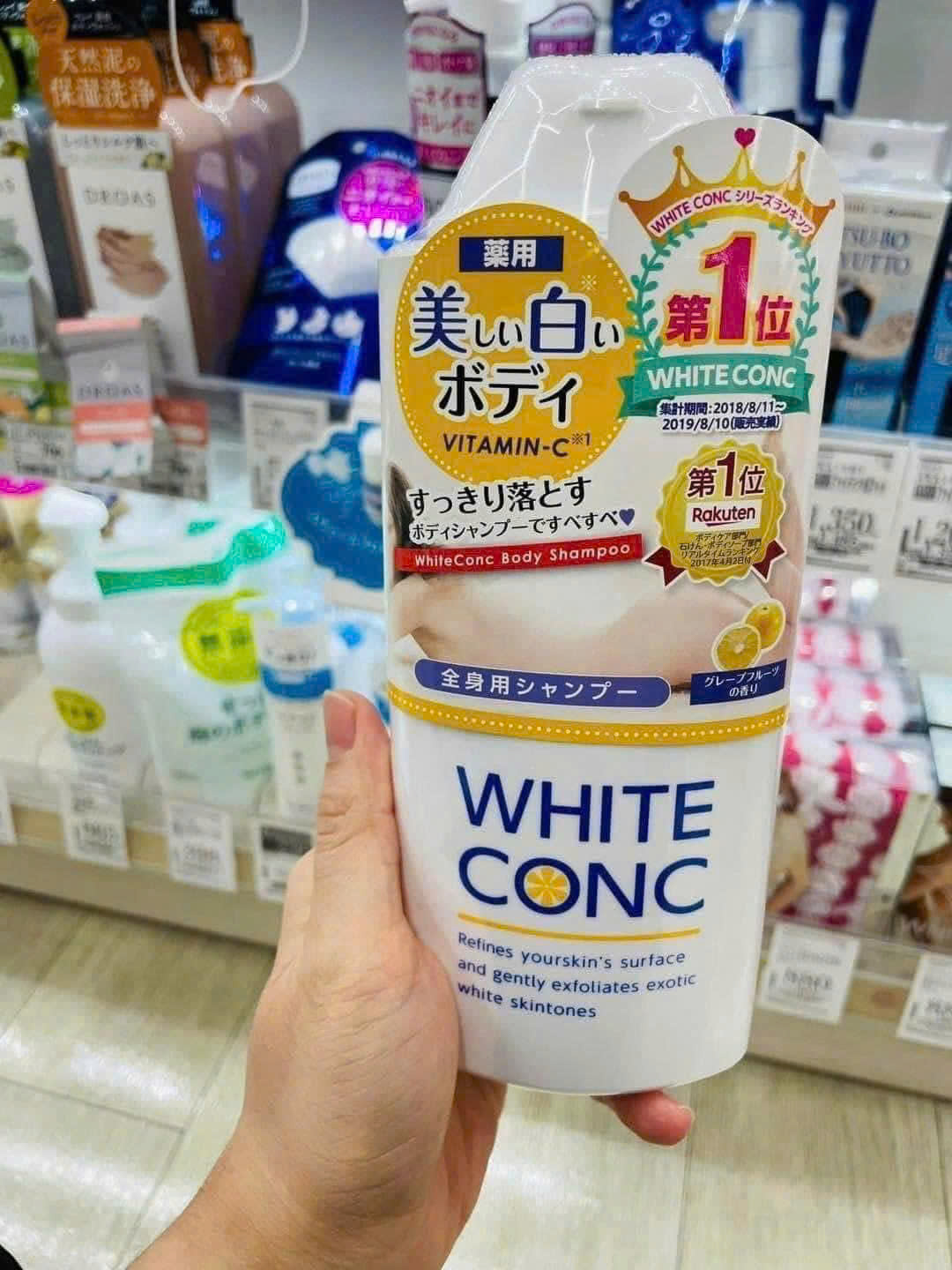 - Sữa tắm White Conc Body sẽ giúp cho việc chăm sóc da của bạn trở nên dễ dàng hơn. Sản phẩm chứa vitamin C và khoáng chất giúp nuôi dưỡng da trắng hồng và rạng rỡ tự nhiên.
