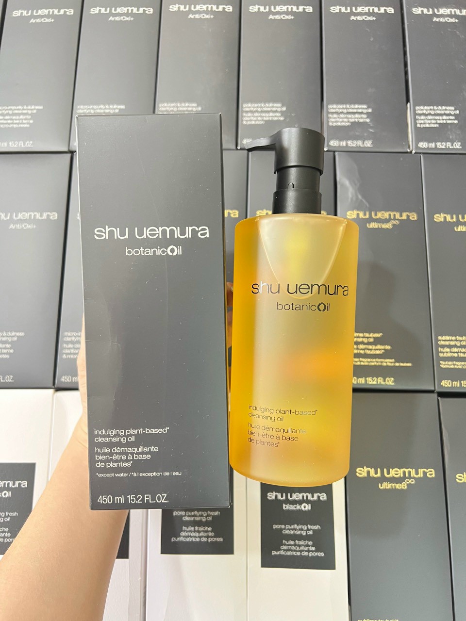 - SHU BOTANICOIL (Shu Vàng) 450ml: Với công thức 99% nguyên liệu thiên nhiên, công dụng chính là thư giãn mọi làn da và tâm trí với 9 loại tinh dầu chiết suất từ: Quả Yuzu Nhật Bản, Hoa Phong Lũ, Lá Kinh Giới, Sả, Vỏ Chanh, Cây Bách, Gừng, Hoa Oải Hương và Bạc Hà.