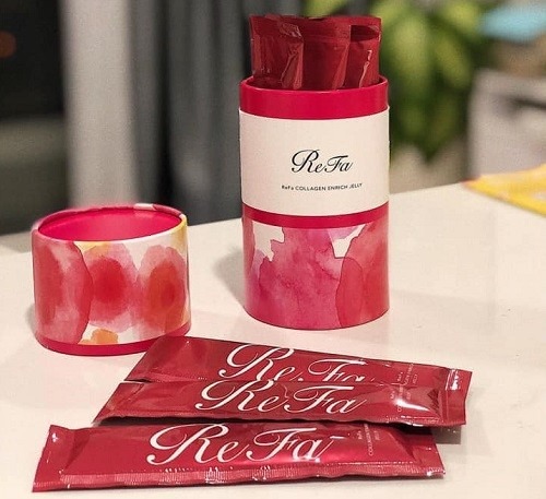 - Refa Collagen Enrich Jelly với hàm lượng collagen đậm đặc lên đến 160.000mg có tác dụng tuyệt vời giúp ngăn ngừa và làm giảm nếp nhăn, tăng độ đàn hồi cho da, phục hồi làn da bị chảy xệ, giúp làn da trẻ trung và tràn đầy sức sống.