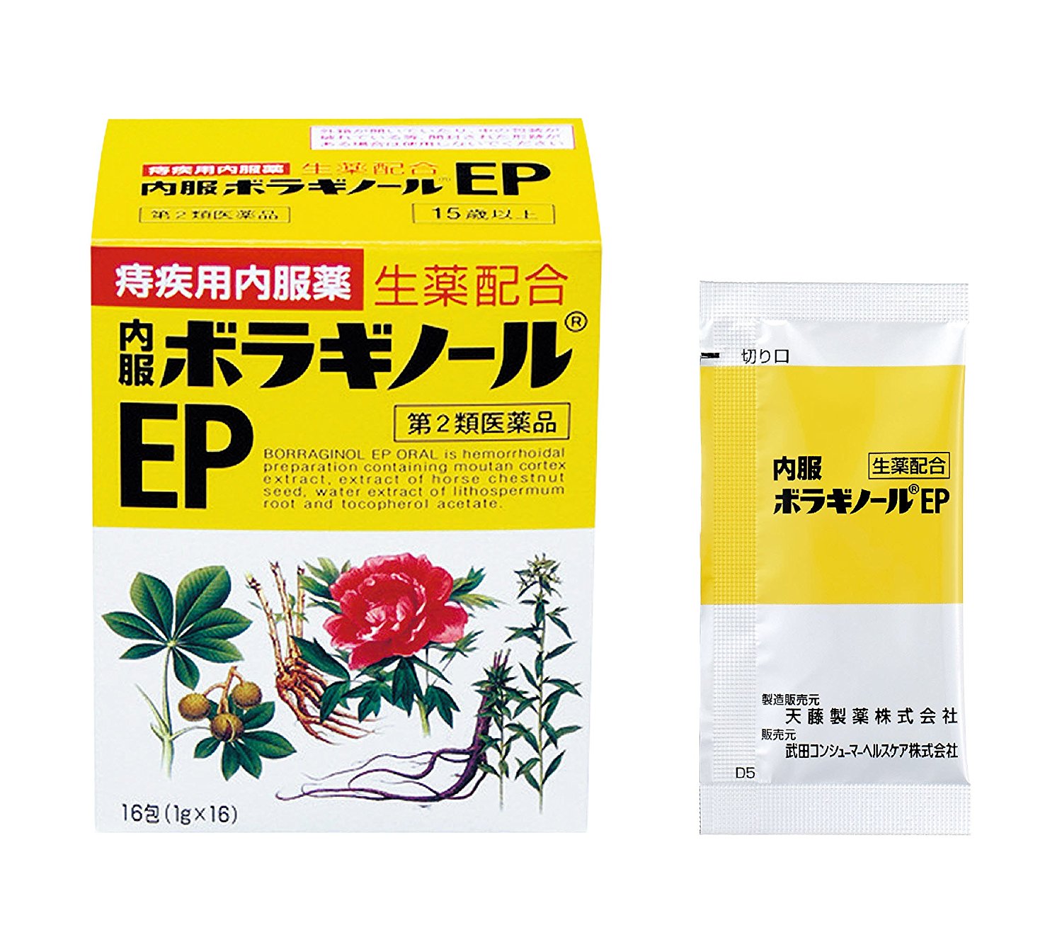 Thuốc trị trĩ Borraginol của Nhật nằm trong bộ sản phẩm đặc trĩ bệnh trĩ nổi tiểng của hãng gồm: kem bôi trĩ chữ A dành cho trĩ ngoại, thuốc đặt trĩ chữ A 10 viên và thuốc Borraginol. Sản phẩm thành phần thảo dược thiên nhiên tác dụng cải thiện rối loạn tuần hoàn máu, nguyên nhân chính dẫn đến trĩ.