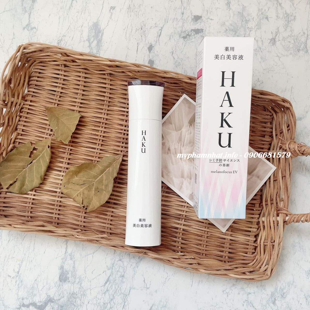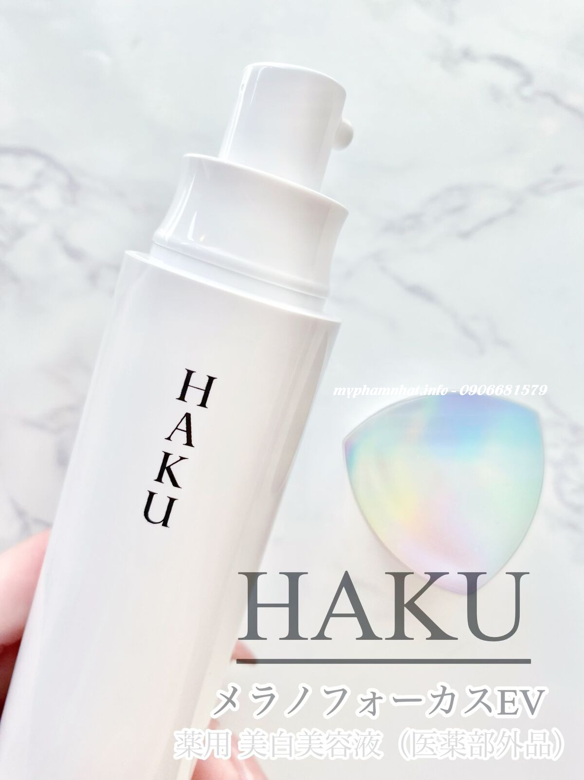 - Shiseido Haku Melanofocus EV với hoạt chất ức chế sự phát triển và lan tỏa của hắc tố da melanin, được chuyên dùng đặc trị nám, tàn nhang, vết đồi mồi, làm mờ các đốm nâu trên mặt, trả lại cho bạn làn da mịn màng và đều màu.