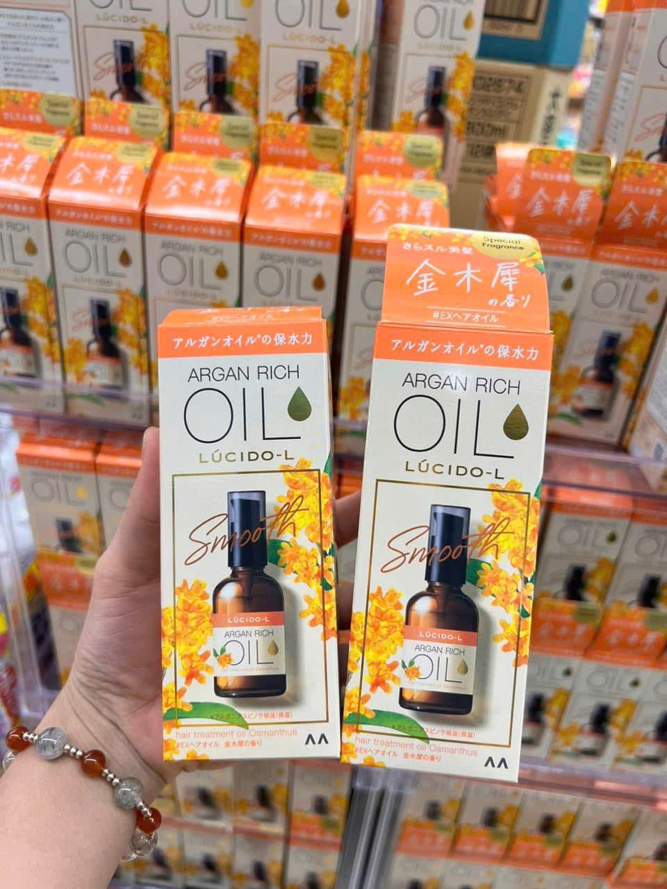 Nếu tóc bạn dễ khô xơ, rối, thiếu độ bóng hoặc phần ngọn tóc hay bị xù khi chải, Lucido-L Argan Rich Oil Smooth là dòng tinh dầu dưỡng tóc rất đáng tham khảo. Theo thông tin từ Mandom, sản phẩm thuộc dòng LUCIDO-L Argan Rich Oil, có chứa dầu argan tự nhiên đã qua xử lý ép siêu áp lực để hỗ trợ dưỡng ẩm cho tóc, giúp tóc mềm hơn và vào nếp mượt hơn.