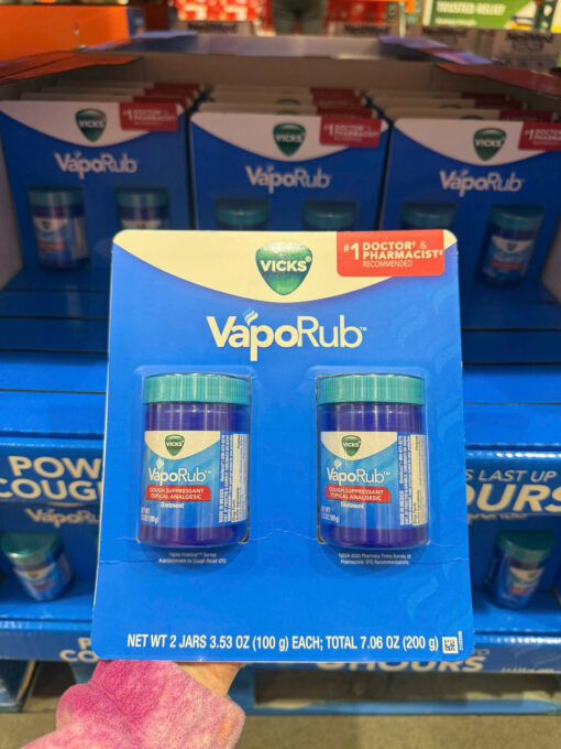 Vicks VapoRub có dạng kem mỡ dễ lấy, dễ thoa và quen thuộc với nhiều gia đình. Thiết kế pack 2 hũ lớn giúp tiện chia dùng linh hoạt, có thể để một hũ ở nhà và một hũ mang theo khi cần. Chất kem đặc, dùng trực tiếp ngoài da, phù hợp với người muốn chuẩn bị sẵn một sản phẩm chăm sóc cơ bản trong nhà.