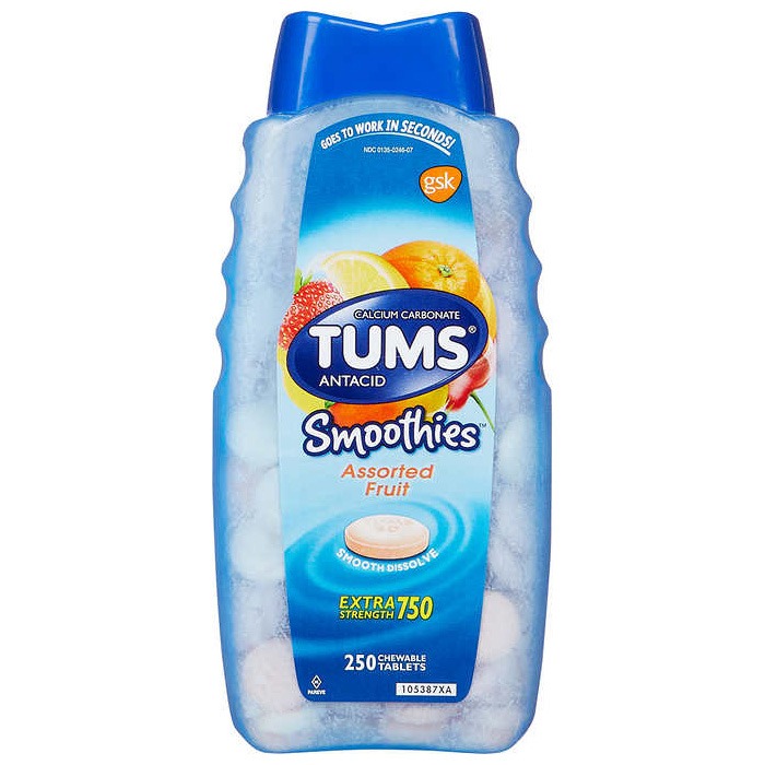 - Tums Smoothies Extra Strength 750 chứa các chất kiềm có tác dụng trung hòa axit, dịch vị, làm giảm độ chua trong dạ dày. Hỗ trợ và phòng ngừa căn bệnh viêm loét dạ dày, chứng trào ngược axit.