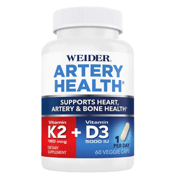 Viên uống bảo vệ tim và xương Weider Artery Health with Vitamin K2 Plus D3