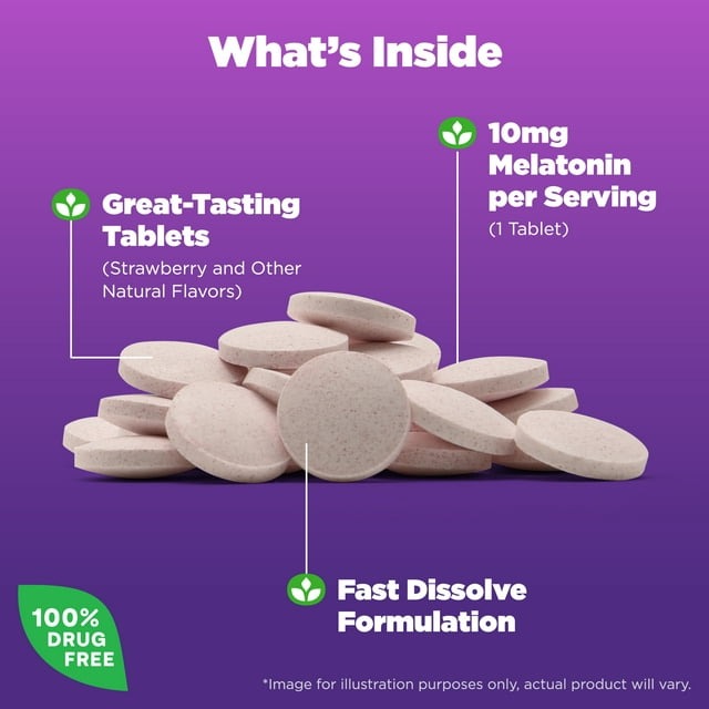 Melatonin là chất dẫn xuất cho bạn đi vào giấc ngủ dễ hơn, hàm lượng hợp lý giúp bạn có giấc ngủ sâu, an toàn. Sản phẩm Natrol Melatonin 10mg Fast Dissolve bổ sung Melatonin thiết yếu mà cơ thể cần.