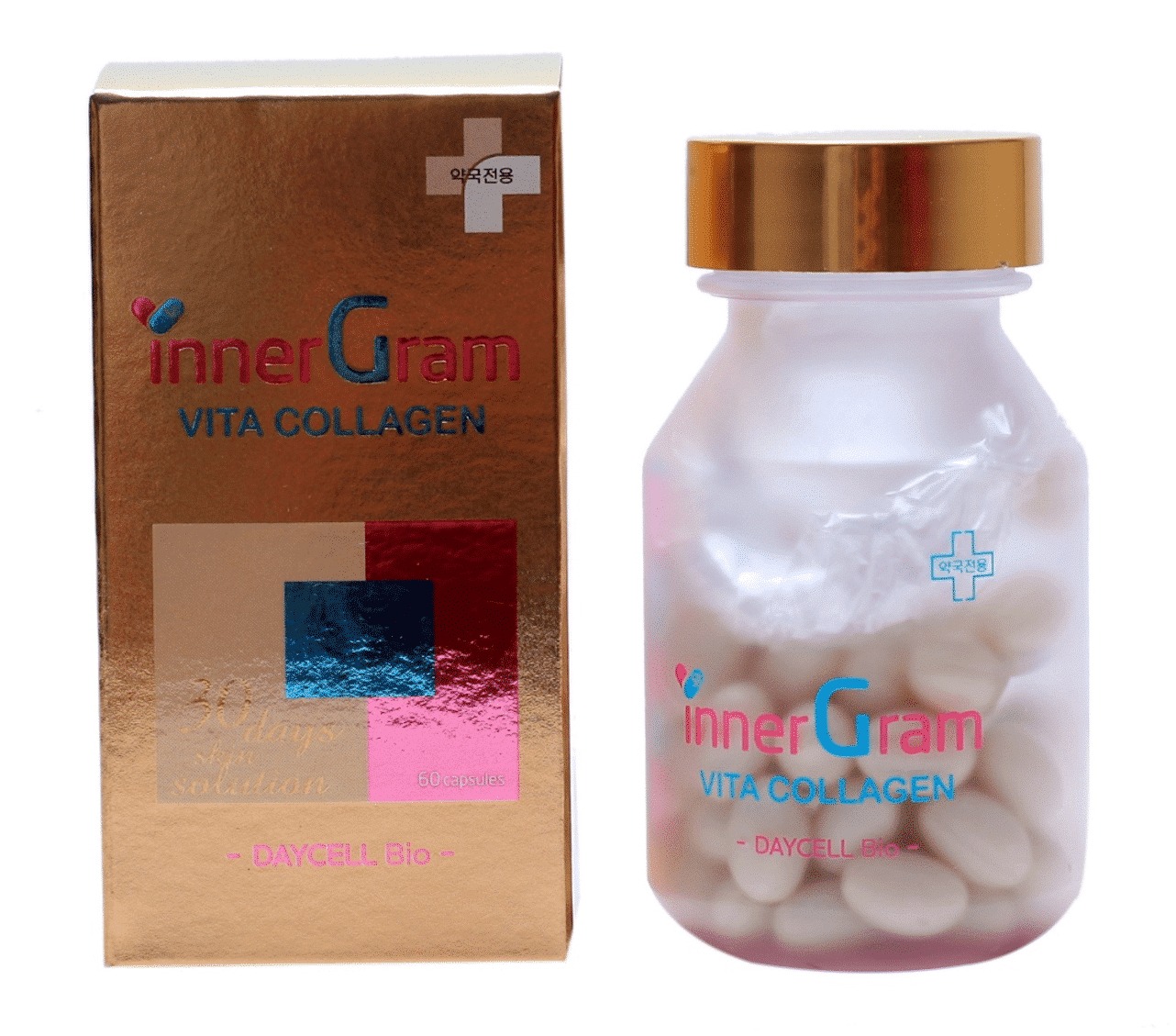 - Inner Gram Vita Collagen 60 viên được bảo trợ bởi tập đoàn Samsung, được chứng nhận bởi bộ y tế Hàn Quốc, được bán trong các hiệu thuốc và thực phẩm chức năng trên toàn quốc, chính vì vậy, bạn hoàn toàn có thể yên tâm về chất lượng.