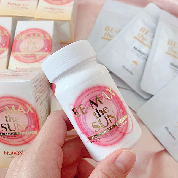 - Be-Max The Sun Nhật Bản ngăn chặn sự hình thành của sắc tố melanin- nguyên nhân gây ra nám da, sạn da, đồng thời ngăn ngừa mụn trị nám và tàn nhang hiệu quả; giúp làm trắng sáng da ngay từ bên trong cơ thể một cách an toàn; làm chậm quá trình lão hóa da; giảm hấp thụ chất tẩy nước bể bơi làm khô và hỏng da.