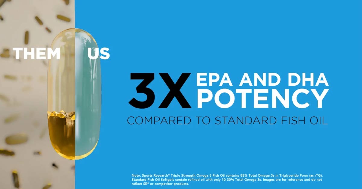Sports Research Triple Strength Omega-3 Fish Oil là dòng dầu cá cô đặc cao cấp với công thức 1 viên/ngày, tập trung hàm lượng Omega-3 tinh khiết cao từ cá biển tự nhiên.