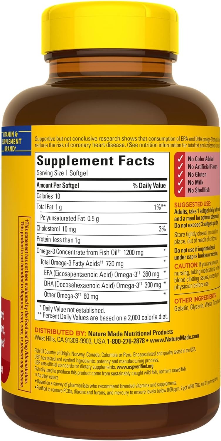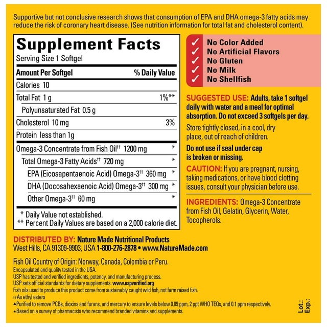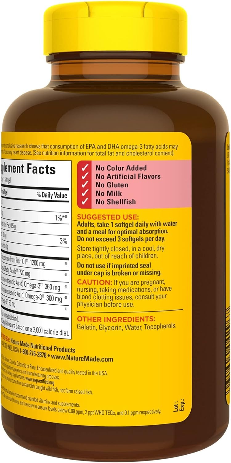 Hướng dẫn sử dụng Dầu cá Fish Oil omega 3 Nature Made 1200mg của Mỹ