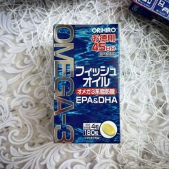 Viên uống dầu cá Omega-3 Orihiro EPA DHA Nhật Bản 180 viên là thực phẩm bổ sung nội địa Nhật, chứa dầu cá tinh chế có EPA và DHA, phù hợp với người muốn bổ sung omega-3 mỗi ngày theo cách tiện lợi hơn. Sản phẩm được bào chế dạng viên nang mềm, dễ dùng, thích hợp cho người ít ăn cá, không thích ăn cá hoặc có chế độ ăn uống chưa cân bằng. Theo thông tin công khai từ Orihiro, sản phẩm có quy cách 180 viên, dùng 4 viên/ngày, tương đương khoảng 45 ngày sử dụng.