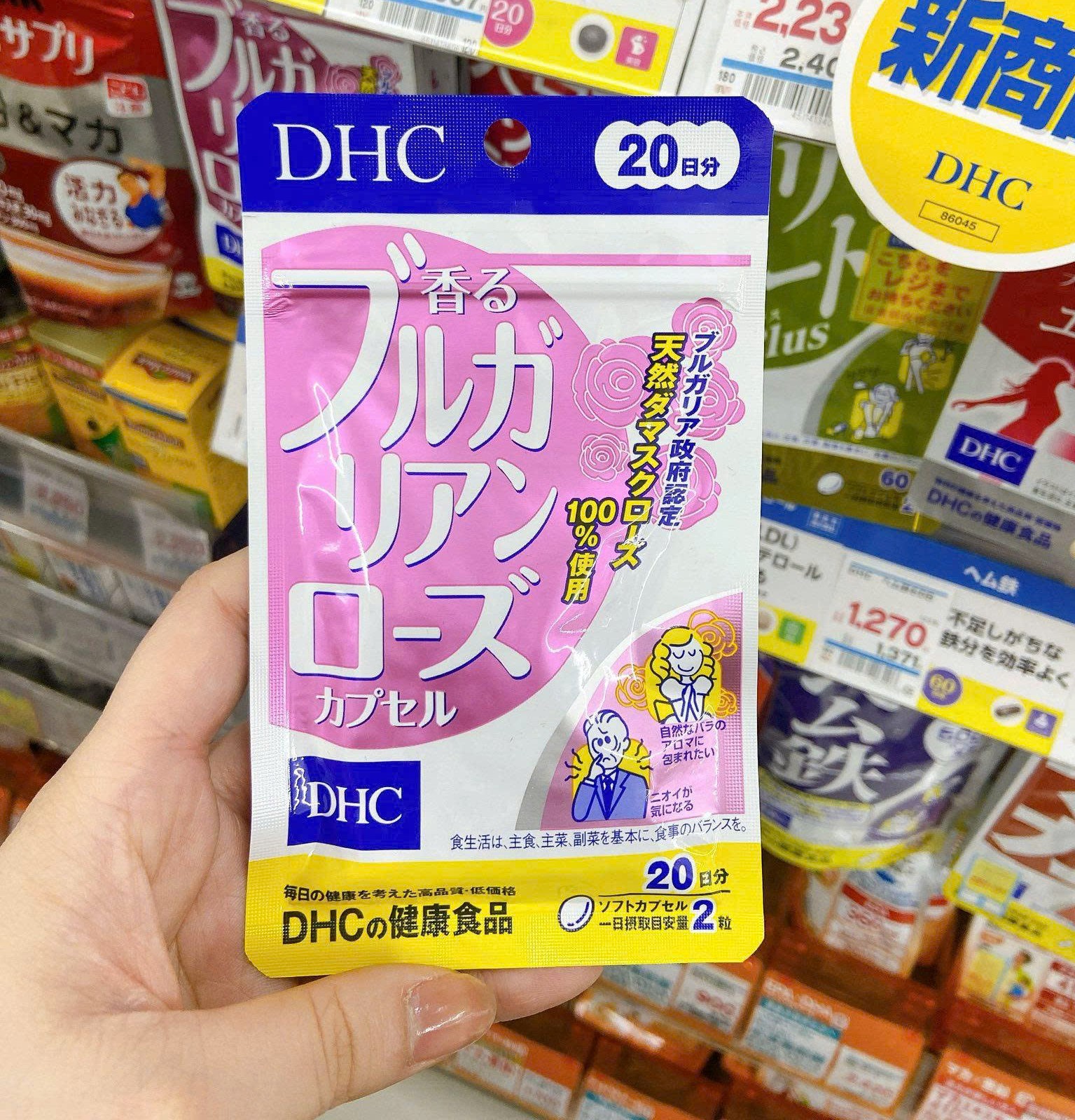 Viên uống DHC hoa hồng khử mùi cơ thể là thực phẩm bổ sung nổi tiếng của DHC Nhật Bản, thường được biết đến với tên DHC Bulgarian Rose Capsule. Sản phẩm sử dụng 100% tinh dầu hoa hồng Damask Bulgaria tự nhiên, giúp che phủ mùi cơ thể bằng hương hoa hồng thanh lịch theo mô tả của hãng. Mỗi ngày dùng 2 viên, phù hợp cho người quan tâm đến mùi cơ thể, mùi khoang miệng hoặc muốn có cảm giác thơm dễ chịu hơn trong giao tiếp hằng ngày.