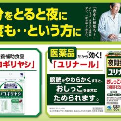 Điểm nổi bật của sản phẩm là hãng nhấn mạnh khả năng cải thiện chức năng “giữ nước tiểu” của bàng quang, từ đó hỗ trợ giảm tình trạng tiểu đêm nhiều lần. Trên trang chính hãng, Kobayashi cũng nêu rõ đây là dòng thuốc phù hợp với người dạ dày ruột yếu và dùng ngày 2 lần, khá tiện cho việc duy trì đều đặn. Hộp trong ảnh là quy cách 120 viên.