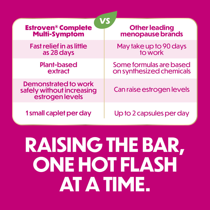 Estroven Complete Multi-Symptom Menopause Relief – viên uống giúp làm giảm tới 12 triệu chứng mãn kinh, khôi phục sự cân bằng và tăng cường nội tiết tố. Chứa chiết xuất rễ cây đại hoàng Rhapontic dựa trên thực vật đã được chứng minh lâm sàng đã được các bác sĩ tin tưởng trong hơn 20 năm để làm giảm các triệu chứng mãn kinh, do tính an toàn và hiệu quả của nó.