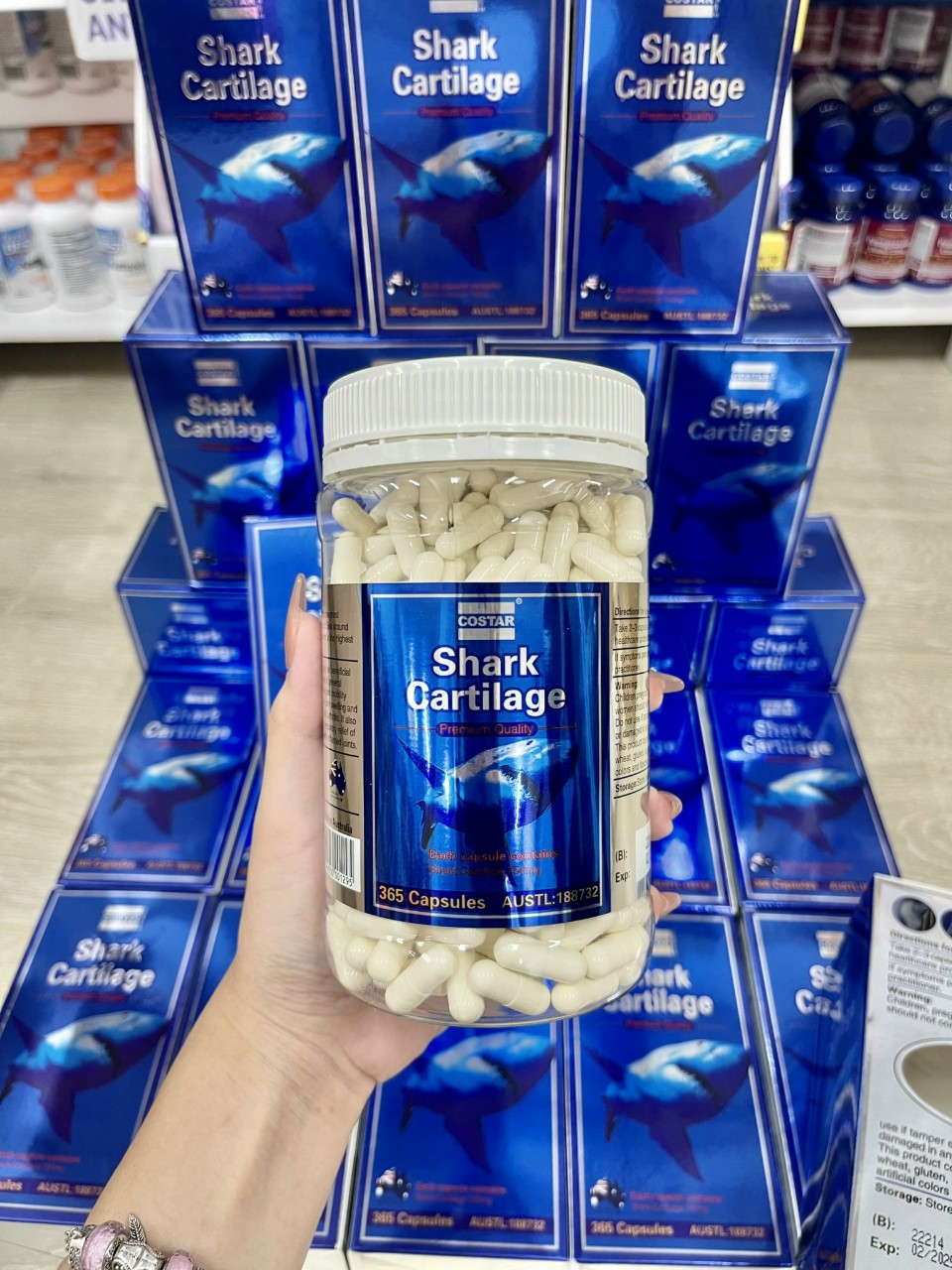 Sụn vi cá mập Costar Shark Cartilage của ÚC được tinh chế từ 100% bột đông khô của sụn vi cá mập, đây chính là nguồn cung cấp chondroitin và glycosaminoglycans. Chondroitin là nguyên liệu chủ yếu trong quá trình tái tạo mô sụn và xương. Chất này cũng có tác dụng ức chế enzym elastase (men này là chất trung gian gây thoái hóa sụn khớp); kích thích quá trình tổng hợp các proteoglycan nên được chỉ định dùng bổ trợ trong các chứng hư và thoái hóa khớp.