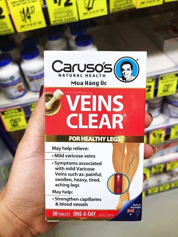 - Caruso’s Veins Clear 60 viên của Úc giúp cải thiện độ đàn hồi của tĩnh mạch, cho tĩnh mạch khỏe mạnh.