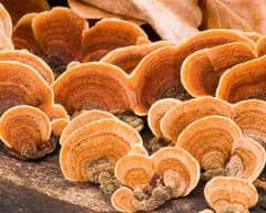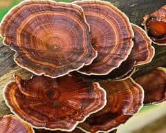 - Reishi: Được coi là một loại thảo mộc mạnh mẽ. Nấm Reishi có lịch sử hơn 4.000 năm, với tài liệu viết về lợi ích của họ có niên đại từ thời Hán (206B.C – 8AD). Nấm này còn được gọi là nấm lingzhi ở Trung Quốc. Chúng đại diện cho sự kết hợp sức mạnh tinh thần và tuổi thọ với chữ “ling” và “zhi”. Nấm này là nấm lớn, đen với bề ngoài bóng loáng và kết cấu bằng gỗ. Loài nấm này đã được nghiên cứu khoa học từ năm 1960 vì lợi ích tiềm năng của nó đối với việc chăm sóc sức khoẻ nói chung.