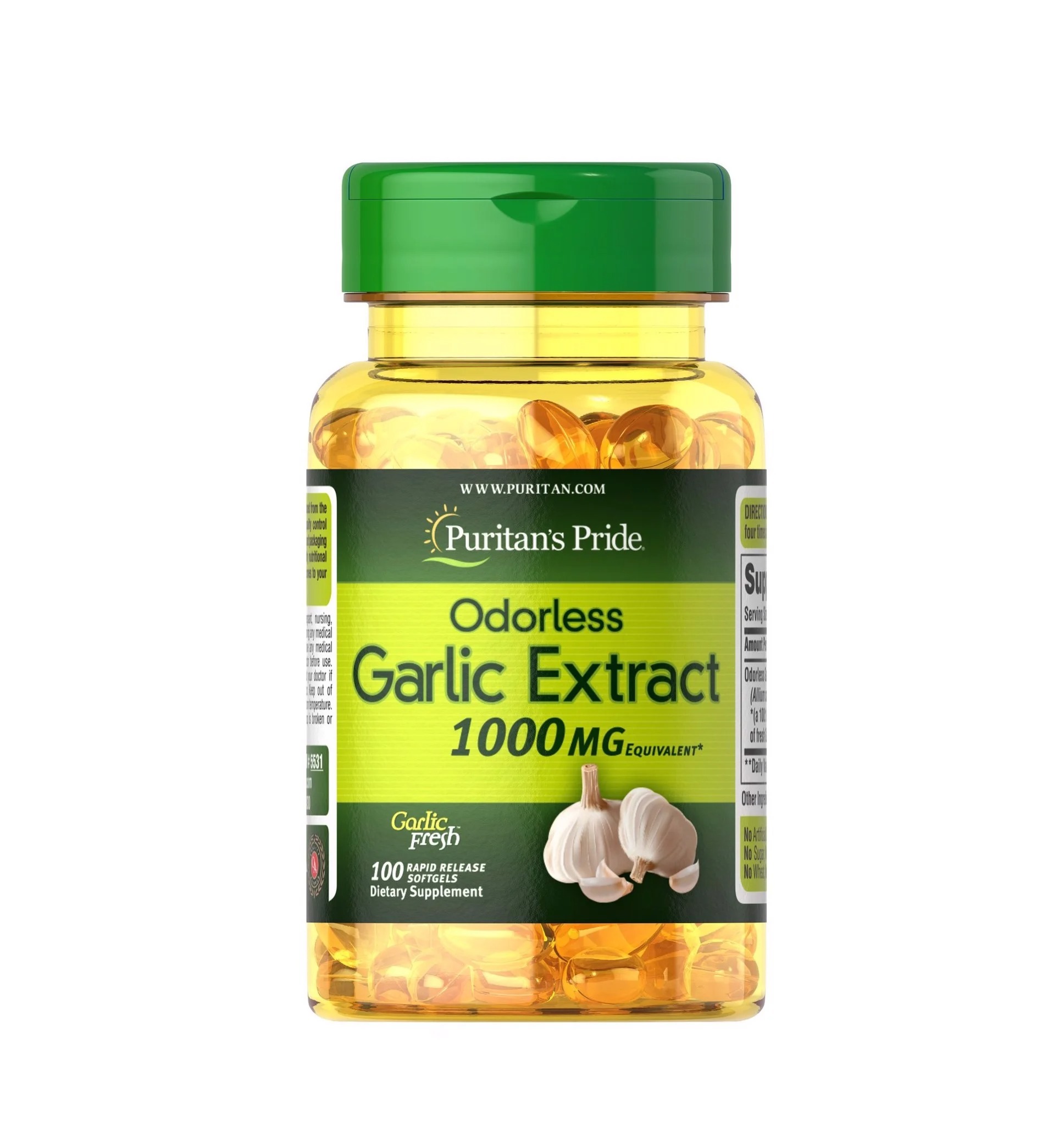 Tinh Dầu Tỏi (Không Mùi) Puritan’s Pride Odorless Garlic Extract 1000mg của Mỹ viên tăng sức đề kháng cho cơ thể, hỗ trợ tiêu hóa, giảm cholesterol trong máu, ngăn ngừa xơ vữa động mạch…