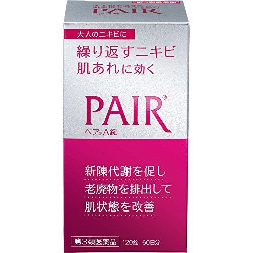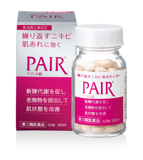 - Thuốc trị mụn Pair Nhật Bản có chứa vitamin B2 và B6, chuyên để trị các loại mụn do cơ thể nóng người, hay do thiếu vitamin, hay các loại mụn của người lớn do khô da và bị stress.
