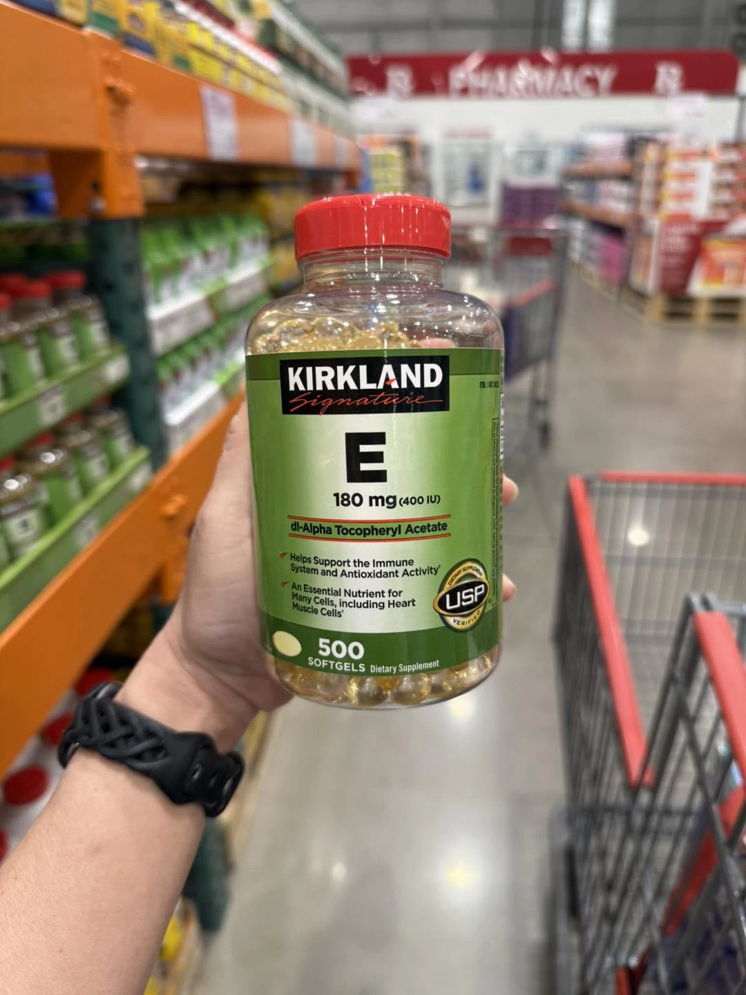 Mọi người nhìn vào bức ảnh mình tự tay chụp tại quầy kệ của siêu thị Costco Mỹ (phía sau còn rõ cả biển hiệu Pharmacy và xe đẩy hàng) là đủ yên tâm 100% về độ chuẩn xách tay rồi nhé!