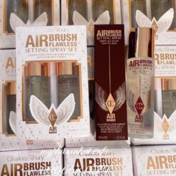 - Charlotte Tilbury Airbrush Flawless Setting Spray có công thức hiệu quả cao kết hợp hài hòa với kem nền, kem che khuyết điểm, phấn phủ và phấn phủ để tạo ra một bức màn dưỡng ẩm không trọng lượng và một lớp nền hoàn mỹ .