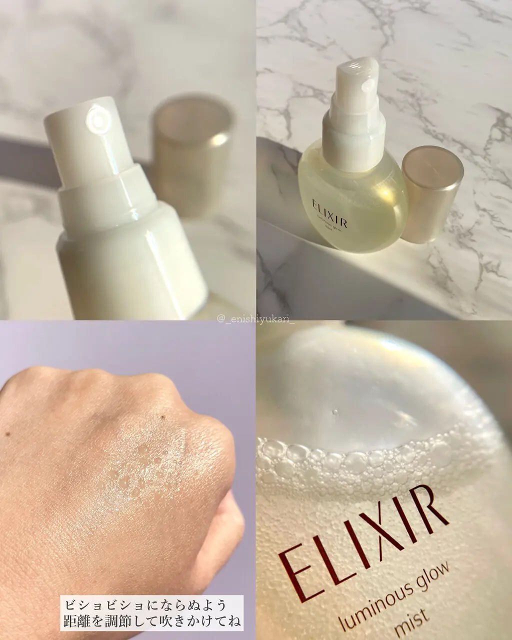 - Xịt dưỡng cao cấp Shiseido Elixir Luminous Glow Mist với thành phần dầu dưỡng cũng chính là bí quyết khoá ẩm giúp da mịn mượt, căng bóng, đúng với tên gọi “luminous glow”.