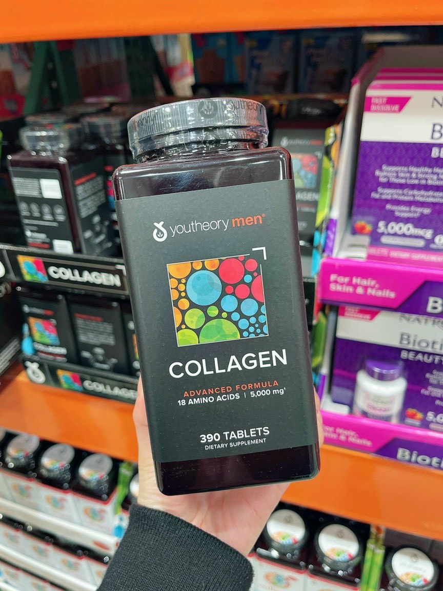 Nếu bạn đang tìm một dòng collagen dành riêng cho nam giới, dạng viên gọn, dễ dùng mỗi ngày và không cần pha chế, thì Youtheory Men’s Collagen Advanced Formula là sản phẩm khá đáng chú ý. Theo hình bạn gửi, đây là bản 390 viên. Trên trang Costco, đúng phiên bản 390 viên này được mô tả là công thức cung cấp 5g collagen type 1, 2, 3 cùng 18 axit amin, có thêm vitamin C và biotin, hướng đến nhu cầu hỗ trợ da, khớp và xương.